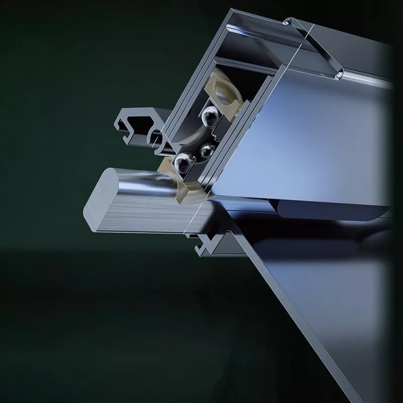 Мазен притисок и влечење, стабилен и издржлив. Се користат шини со висока прецизност 304 не'рѓосувачки челик. Материјалот е тврд и се турка и се влече непречено без бучава. Лесно е да се чисти и не е лесно да се акумулира вода.