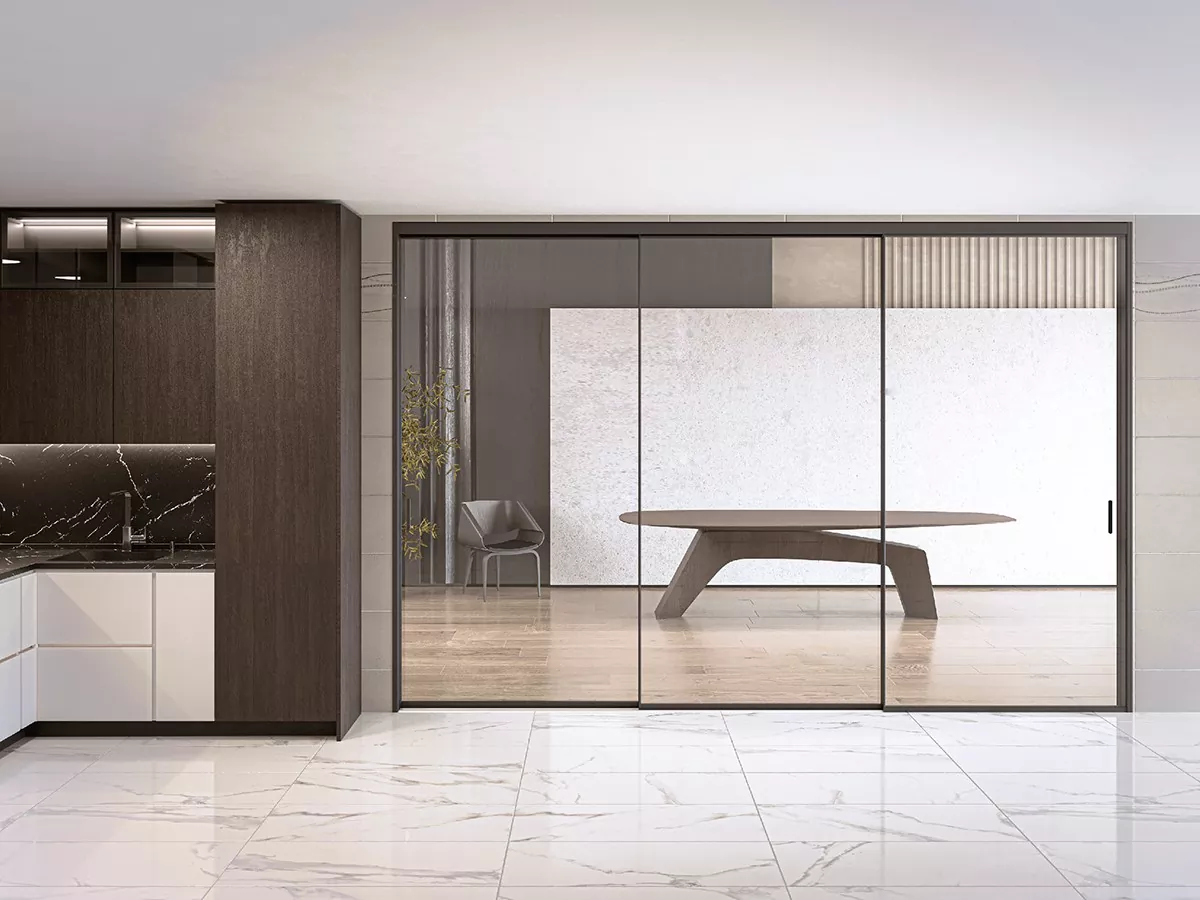 Екстремно едноставна стаклена лизгачка врата е врата која обично користи современи материјали како што се стакло и алуминиумска легура. Тој не е само едноставен и убав, туку и флексибилен, удобен и заштедува простор. Може да се користи во различни прилики како што се врати, ѕидови, прегради итн., и може да се прилагоди според различни потреби. Кога го користите, треба само нежно да ја туркате вратата за да постигнете автоматско затворање без никакви брави.